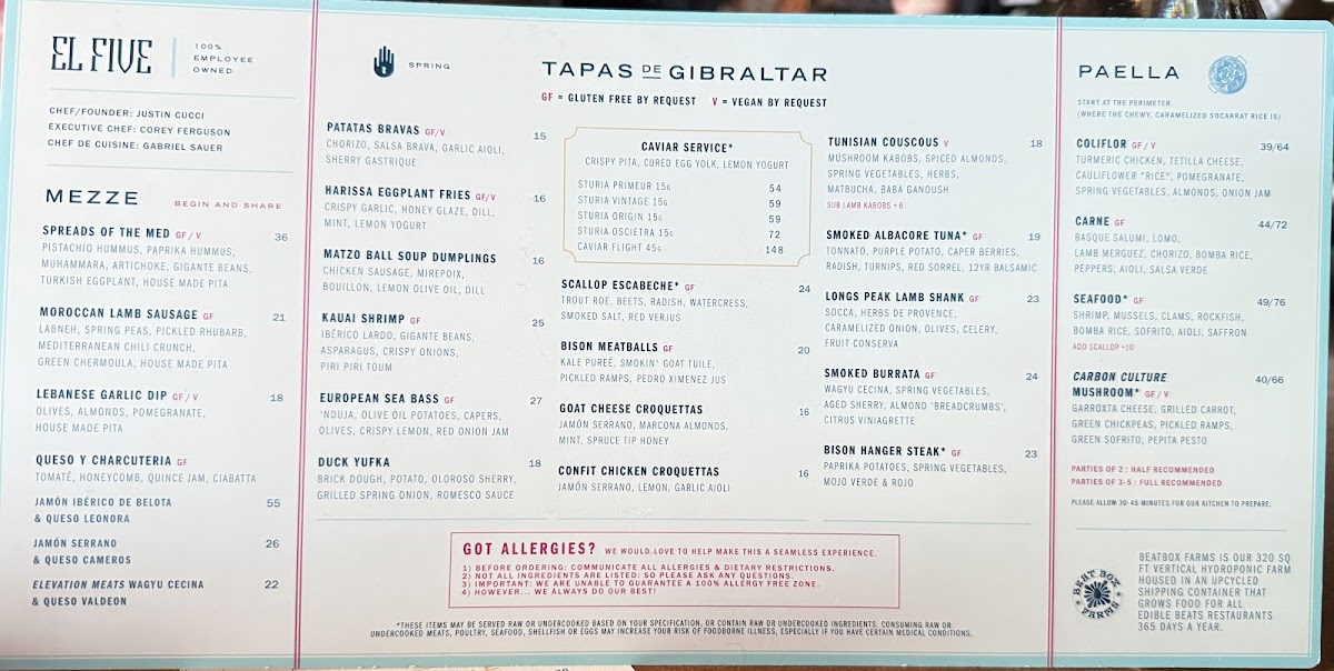 Welcome to El Five, Denver's premier tapas restaurant, where Mediterranean flavors meet exceptional culinary creativity. Located at 2930 Umatilla St, this vibrant eatery offers an enticing array of dishes that celebrate the essence of Spanish and Mediterranean cuisines.